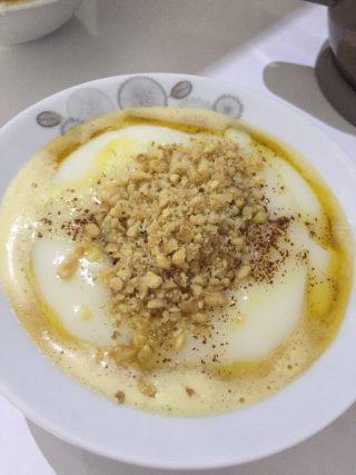 Bugday nişastasini tencereye bırak birazda sun on dakikada muhallebi gibi oluyor şekerde bırak icine sonra onu tabağa dök üstüne tereyağı erit dök ustunede ceviz vücudun yumusuyormus doğuran kadınlara iyi geliyormuş