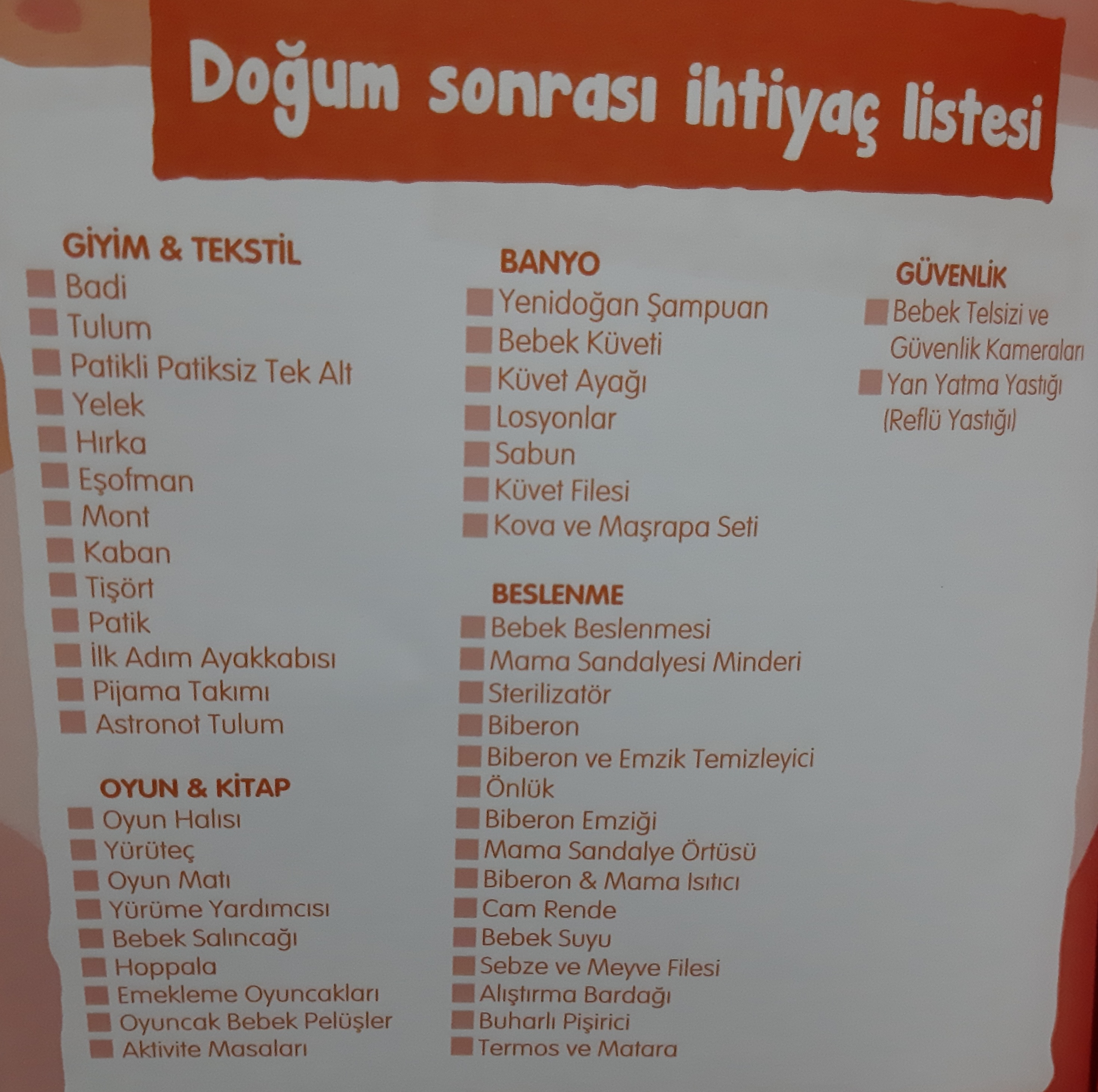 Hastane cikis al canım 2 adet de takım koy yedek battaniye 10 kadar bez alabilirsin emzik biberon hemn izin vermiyorlar zate kendin için de gecelik koy 2 ser takim atlet kilot birde hasta bezi koy terlik yelek v.s ıslak mendil bukadae8 yetior zaten