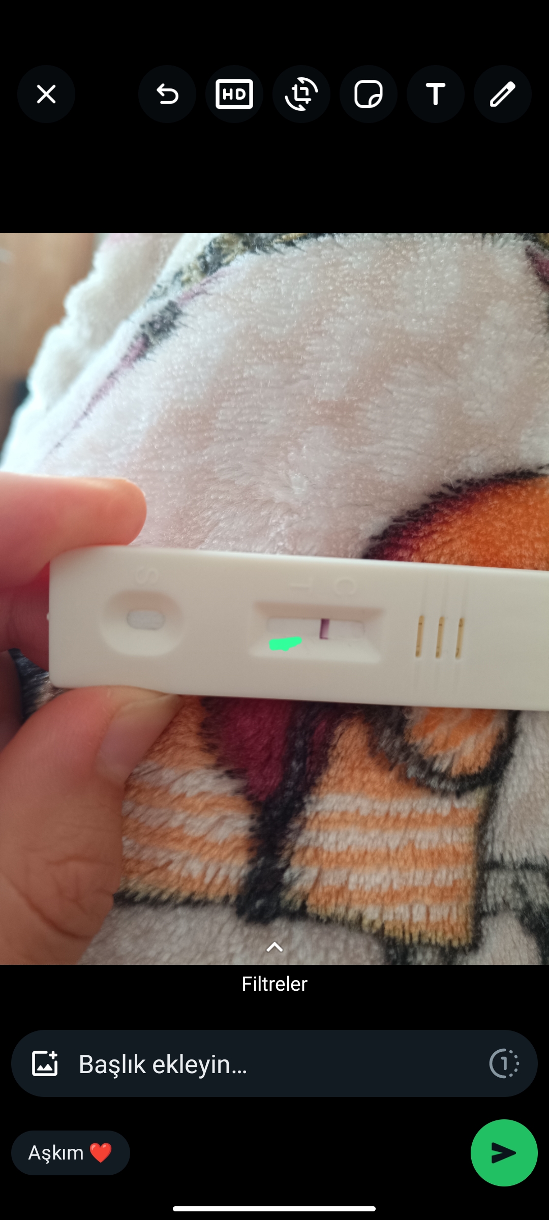 Merhaba arkadaşlar öncelikle en son adetim 6 Mayıs'ta bitti ve hemen arkasından ilişki oldu 15 Mayıs'ta camaşirima böyle pıhtı şeklinde kahve rengi bı leke gördüm sonra devam etmedi sadece bir kez oldu ve 16 Mayıs'ta kaset test yaptım daha sonra hemen beyaz bir çizgi sonra gözle zor gorulur şekilde çıktı bı yandan gosumde sancı ve leke gelen gün kasıkta ve karnimda sancı oldu ve devam ediyor sancı dün akşamdan beri de midem bulanıyor bide normalde günde 2 üç defa tuvalete giderdim şimdi 5 altı defa fln gidiyorum yeşil çizdigim yerde hafif çizgi çok zor görülüyor ve adetimden 12 gün geçti üstünden